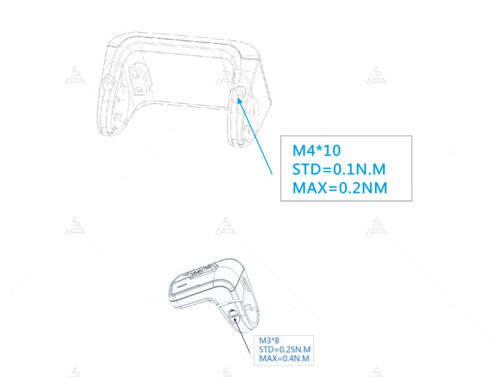 Please pay attention to the screw’s torque value, damaged caused by excessive torque