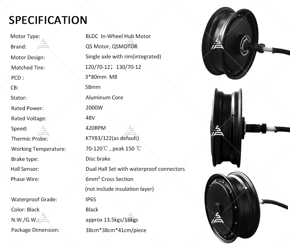 QS Motor 12*3.5inch 2000W V1 48V 40kph Hub Motor for Electric Motorcycle