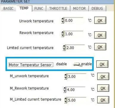The controller support KTY83-122 temperature sensor from motor inside. The function can be enabled or disabled from the software.