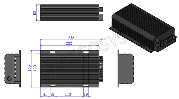 Here is drawing of Sabvoton SVMC controller, 247mm*146mm*62.5mm