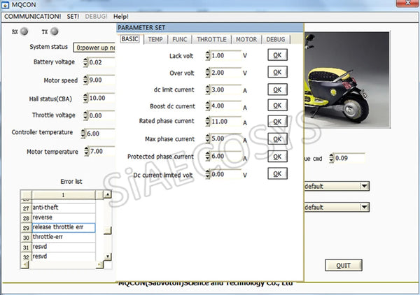 For further information about “how to use computer to set the parameters”. Please ask seller for document “MQCON controller application user manual” and “ MQCON(Sabvoton) FOC Controller “Parameter Manual-EN ”