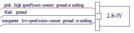 When select the 3 speed(button)in the software. use a button(which can be reset by itself) to connect the pink wire and ground wire.