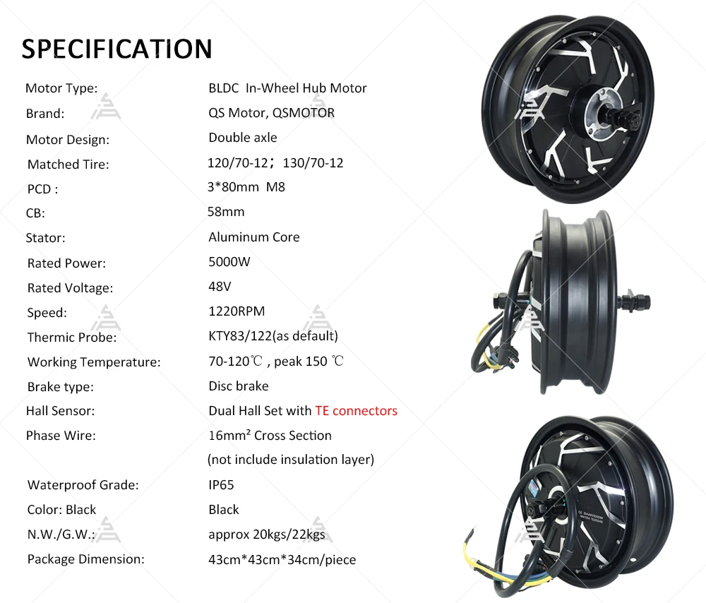 QS Motor 12*3.5inch 5000W V4 48V100kph 72V 150kph Hub Motor for Electric Motorcycle