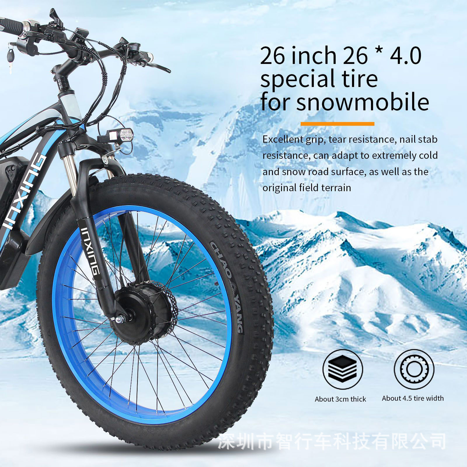 The Front and rear dual motor electric bicycle 21 speed oil brake lithium battery beach snowmobile 26 * 4.0 inches E-bike is far and away, one of our most popular items. People can't seem to get enough of it.