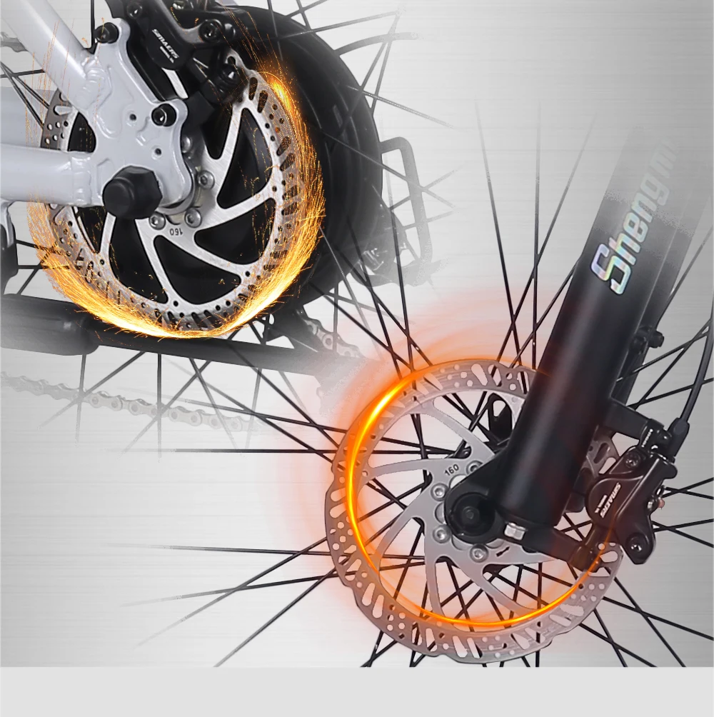 👏【Safety】Front and rear hydraulic disc brakes ensure reliable braking, which improves your safety. The brake lever is fitted with a sensor which, when activated, sends a signal to the motor to stop the motor support. The front and rear tires are puncture resistant and feature reflective strips. The front of the bike is equipped with LED headlights to provide a safe view for riding.