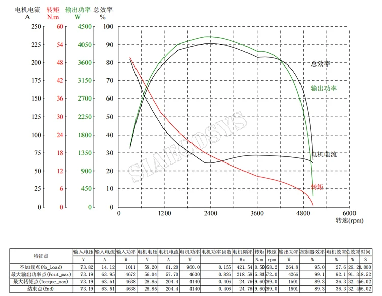 No-load rpm: 2800rpm without flux weakening, 4400RPM with flux weakening.