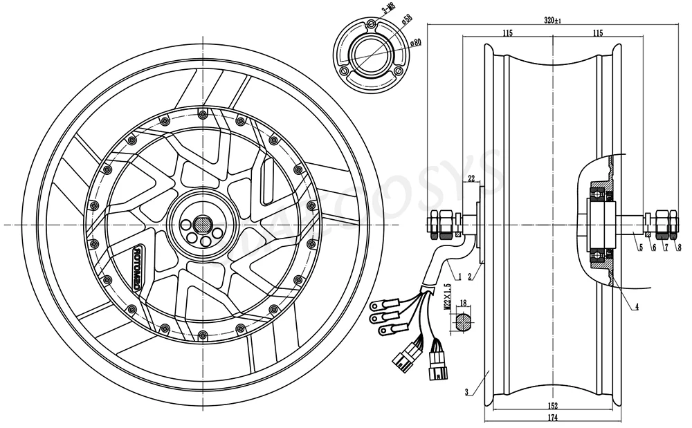 SiAECOSYS 17X6.0inch 70H 12000W V4 96V 157kph Hub Motor with ND721800 ND961800 Controller Powertrain Kits for High Power Electric Motorcycle