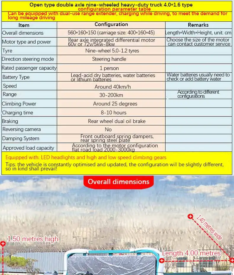 | differential motor | 5kw-8kw | 400*160*45 | 40km/h | 30-200KM | 25 | 9 wheels | Rear Dual Oil Brake |