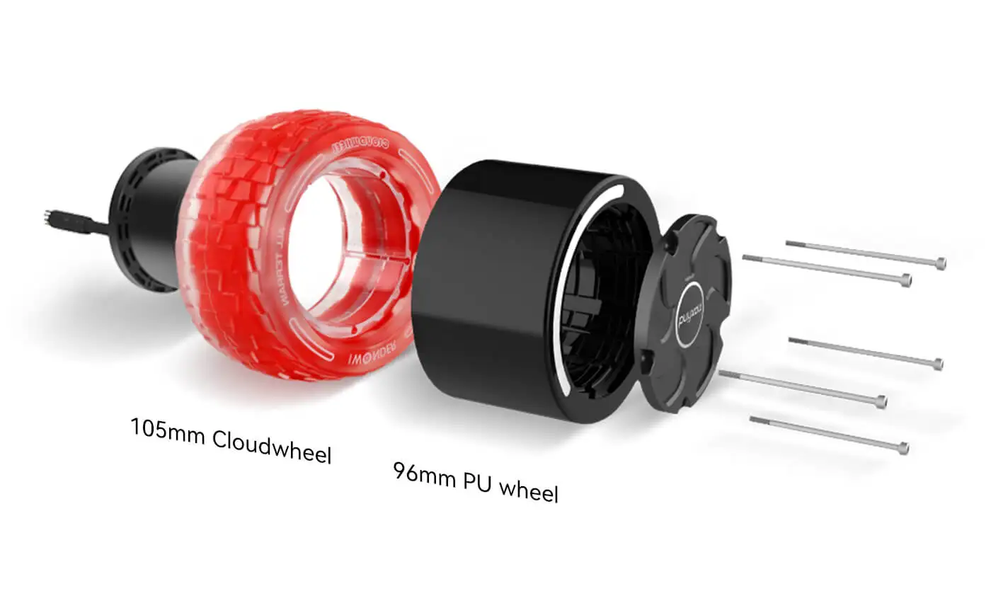 Equipped with the double kingpin truck made of European standard AISIMg5 special material for high speed rail, poured with Maxfind's low-rebound 98A formula, the stepped fat cone/fat barrel pair is optimized for stability and control at high speeds, providing you with a very flexible carving experience.