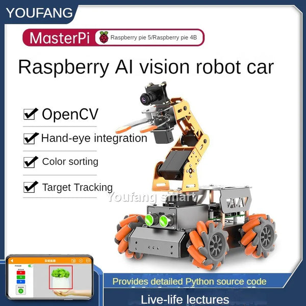 MasterPi Vision AI Robot Open Source Robot Car Robot Arm with Board for Raspberry Pi 4B/4G