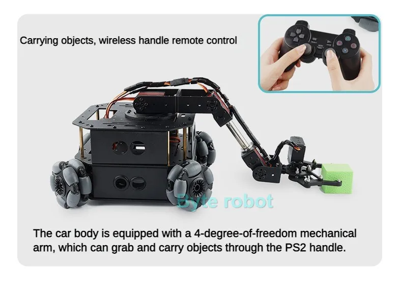 4WD Omni Wheel Robot Car Robotic Arm Chassis Obstacle Avoidance Ps2 Handle RC Car for Arduino Robot Kit UNO Programmable Robot