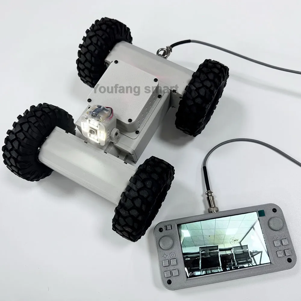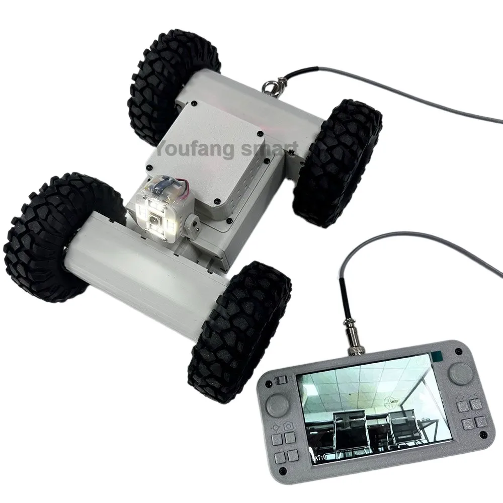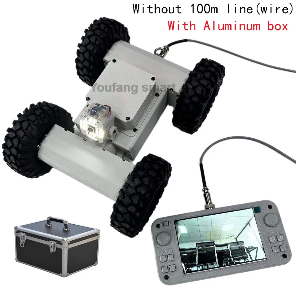 4WD Robotic Car Threading Pipeline Robot Ceiling Hole Reconnaissance Vehicle Video 100m Wired Transmission RC Tank with Handle