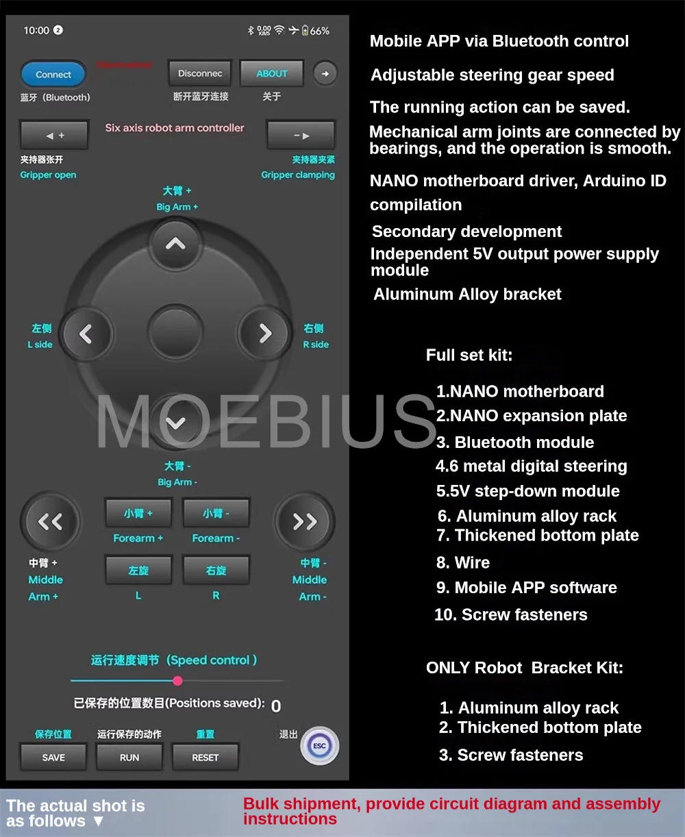 Note: the robot arm is unassembled, we offer the PDF manual.