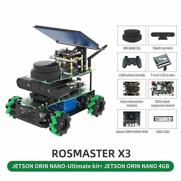 ROSMASTER X3 ROS2 Robot Mecanum Wheel Aluminum Alloy Frame Autopilot Lidar Mapping for Jetson NANO/Jetson Orin NX/Jetson Orin NANO/RaspberryPi5/4B