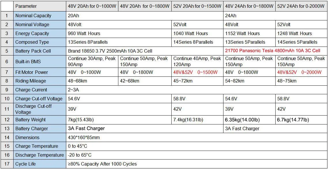 21700/18650 Rear Rack eBike Battery 52V 48V 31.5Ah 28Ah 24Ah 20Ah With Luggage for 2000W 1500W 1000W 750W 500W 24"-28 inch Motor
