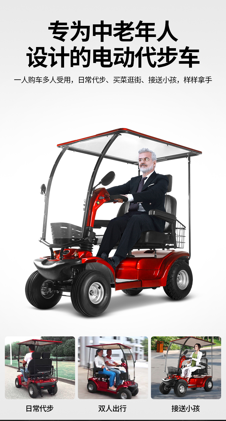 4 Wheels, Two seat, Sunny roof, Mobility Scooter For Elderly Handicap Disable