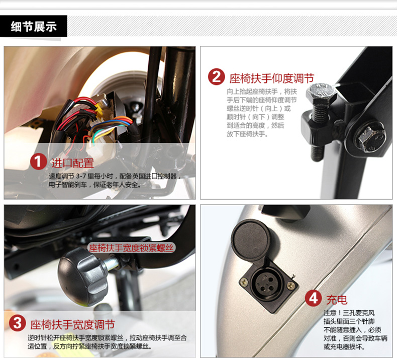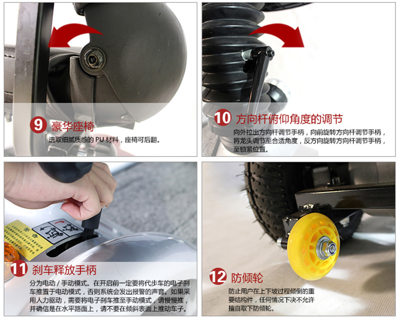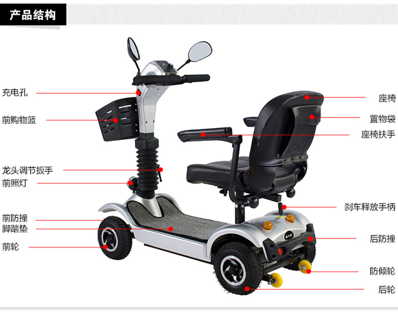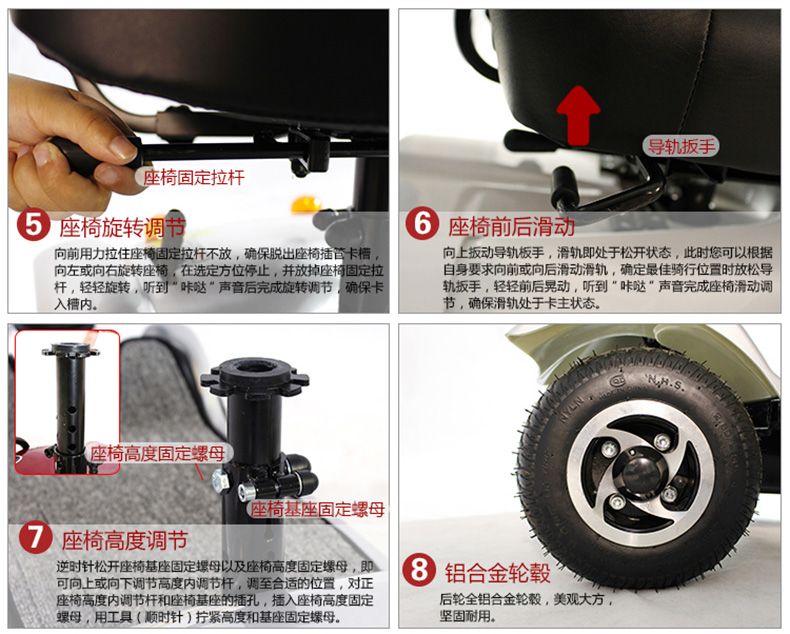Dual-direction rotation,Disassembles into 5 lightweight pieces, mobility scooter for elderly handicapped disabled