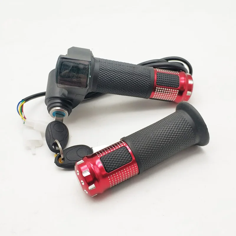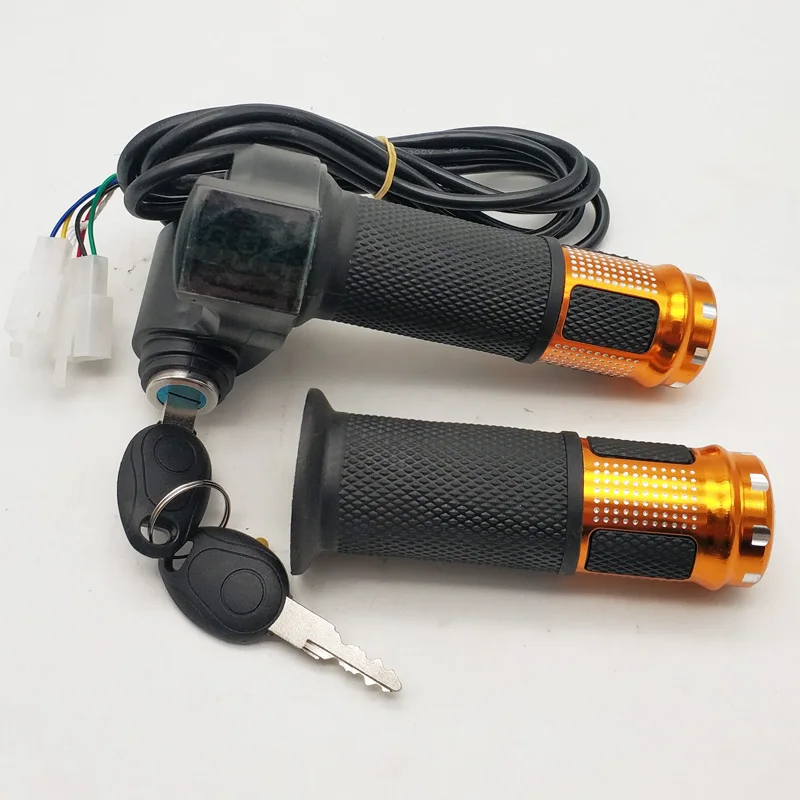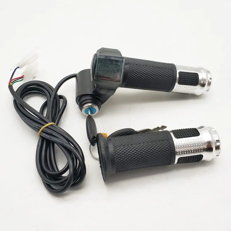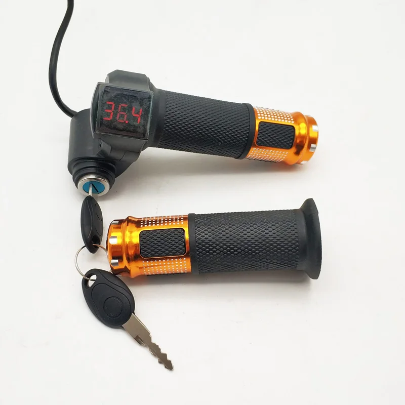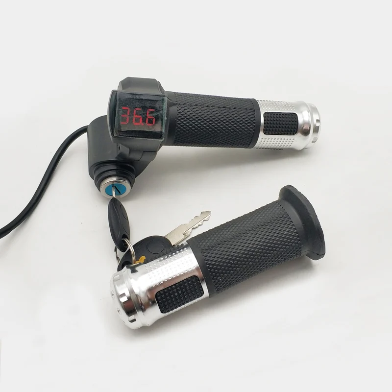 Electric EBike Kit Digital Twist Throttle Grip Handle with LED display Indicator Key Lock Suitable for lead-acid/Lithium Battey