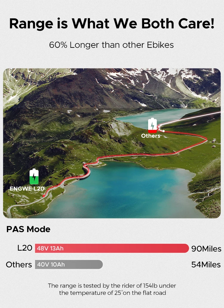Charging the battery takes approximately 6.5 hours, providing a quick turnaround time for your next ride. The Engwe L20 SE is designed to enhance your urban commuting experience, offering a comfortable, efficient, and stylish means of transportation.