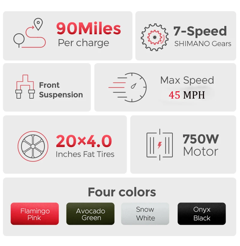 In terms of specifications, the Engwe L20 step through ebike boasts a durable 6061 aluminum alloy frame, providing strength and stability. The 20 x 4.0-inch size ensures a comfortable and smooth ride on various terrains. The bike is equipped with a 750W brushless motor, delivering a torque of 50 N.m for powerful performance. The 48V13Ah lithium-ion battery offers a maximum speed of 25MPH and a maximum mileage of 90 miles, although actual speeds and distances may vary depending on rider weight and road conditions.