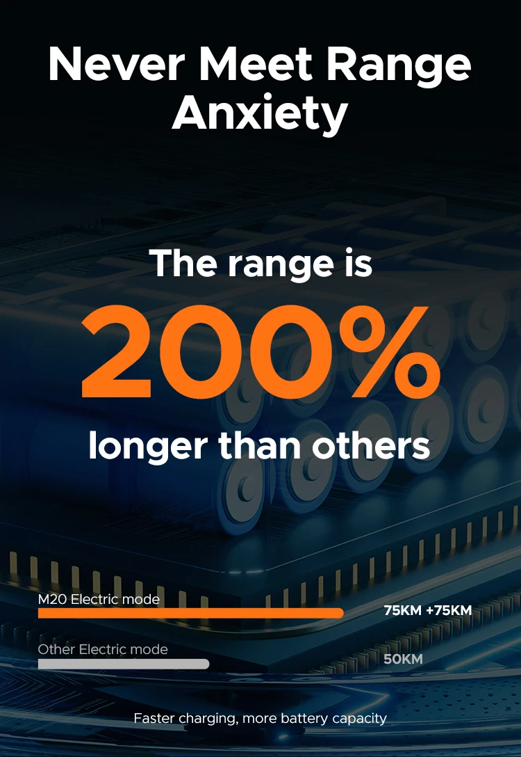 Experience the power, versatility, and comfort of the Engwe M20 Electric Motorcycle. Whether you're exploring off-road trails or navigating city streets, this 20-inch fat tire e-bike is your perfect companion for an immersive and emission-free ride.