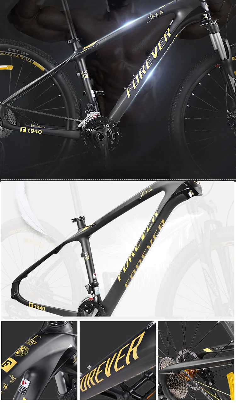 FOREVER F1940-C2 Adult 27.5 Inch Carbon Fiber Frame Mountain Bike 27speed Variable Speed Road Bicycle Men Women Outdoor Ride