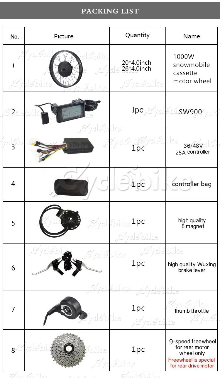 Max Speed 50km/h Electric Snowmobile 48V 1000W Cassette Motor Wheel Electric Bike Conversion Kit