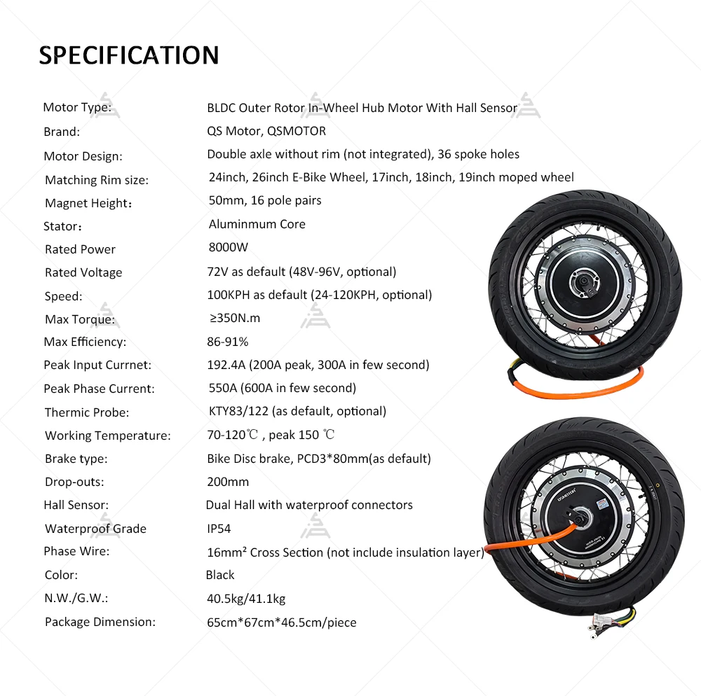 1.QS273 8000W V3 E-motorcycle spoke hub motor Spec