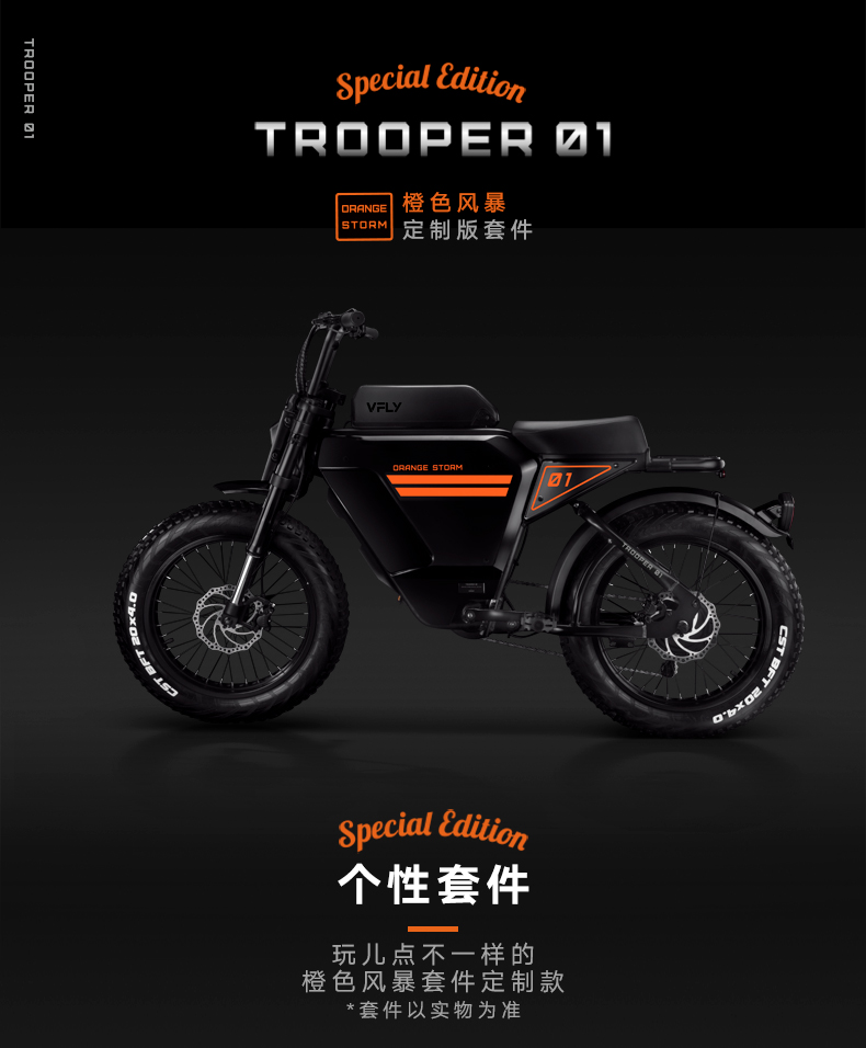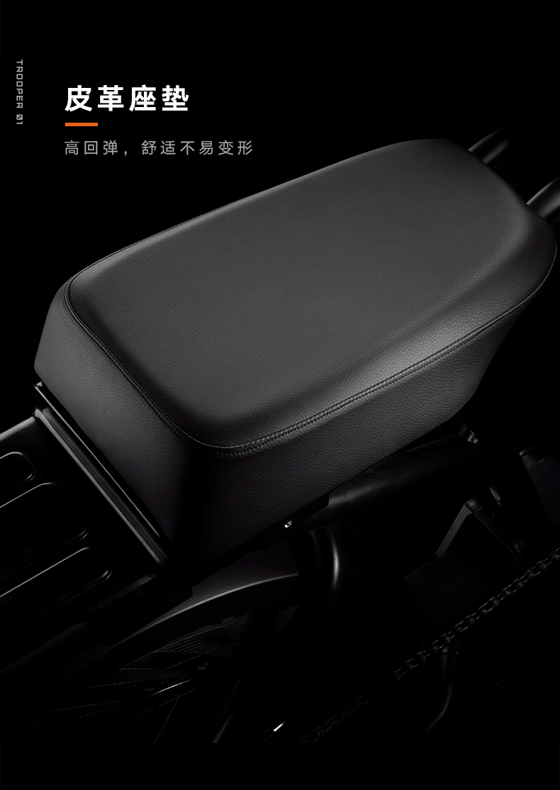With a straddle-type aluminum alloy frame, which breaks through the design of traditional electric bicycles, Trooper 01 won design patents in several countries. There is highly personalized expansion and modification space to meet individualization modification requirements.